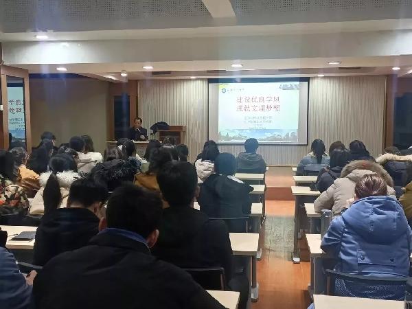为了使19级新生对自己大学四年有更好的规划与发展,引起员工对“建设优良学风,成就文理梦想的宗旨”的重视,威廉希尔williamhill中文于12月5日在老员工活动中心开展新生入学教育励志讲座活动。